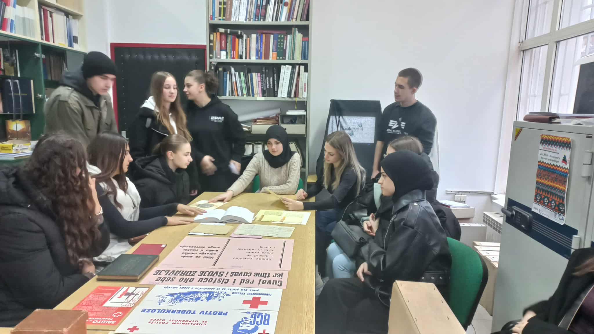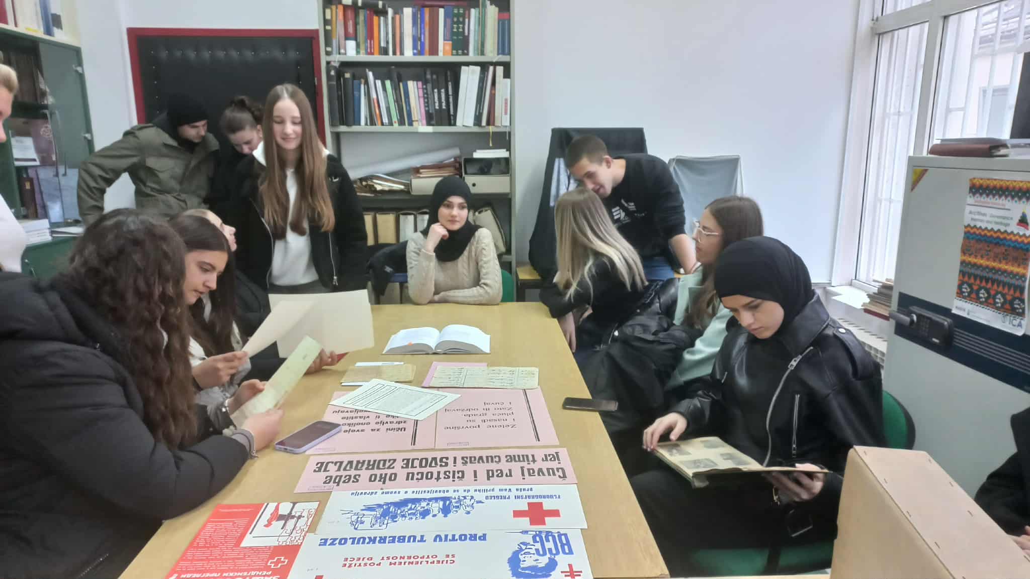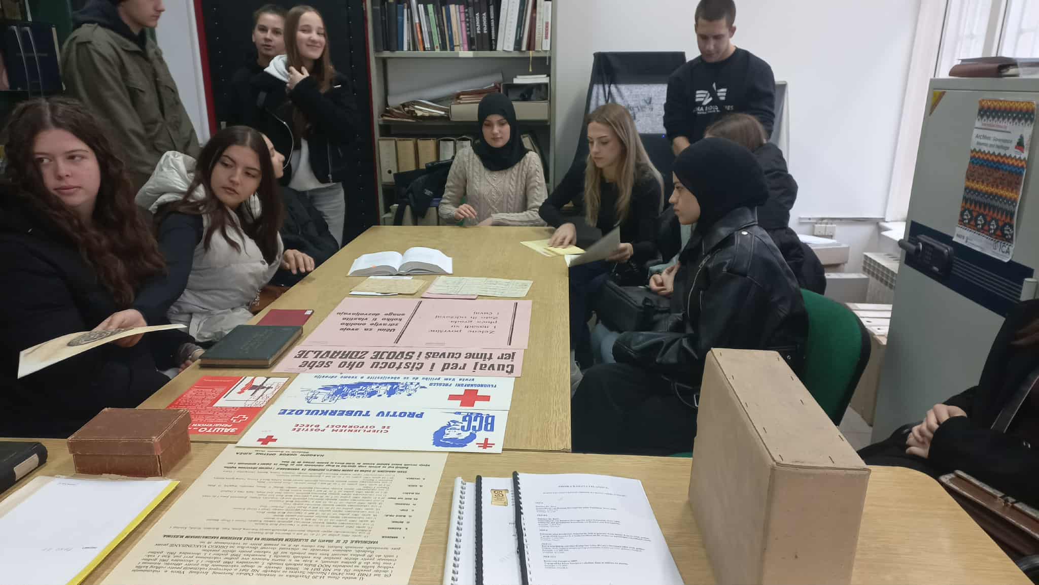 Stručno predavanje o Historijskom arhivu Sarajevo, njegovom djelovanju, arhivskoj djelatnosti i arhivskoj građi učenicima su održale više arhivistice Almira Alibašić i Elma Dervišbegović. Uz upoznavanje sa institucijom Arhiva, učenici su se upoznali sa osnovnim arhivističkim pojmovima uz praktično predstavljanje brojnih primjeraka arhivske građe iz različitih fondova i zbirki, informativnih arhivskih sredstava, te načina rada u arhivu. Kroz postavljanje pitanja i diskusiju učenici su dodatno obogatili svoja saznanja, koja će im, nadamo se, pomoći u kompletnom razumijevanju arhivske profesije i funkcije arhiva u društvu. Svakako, ukazano im je na mogućnost samostalnog istraživanja u arhivskoj građi u njihovom daljem školovanju.